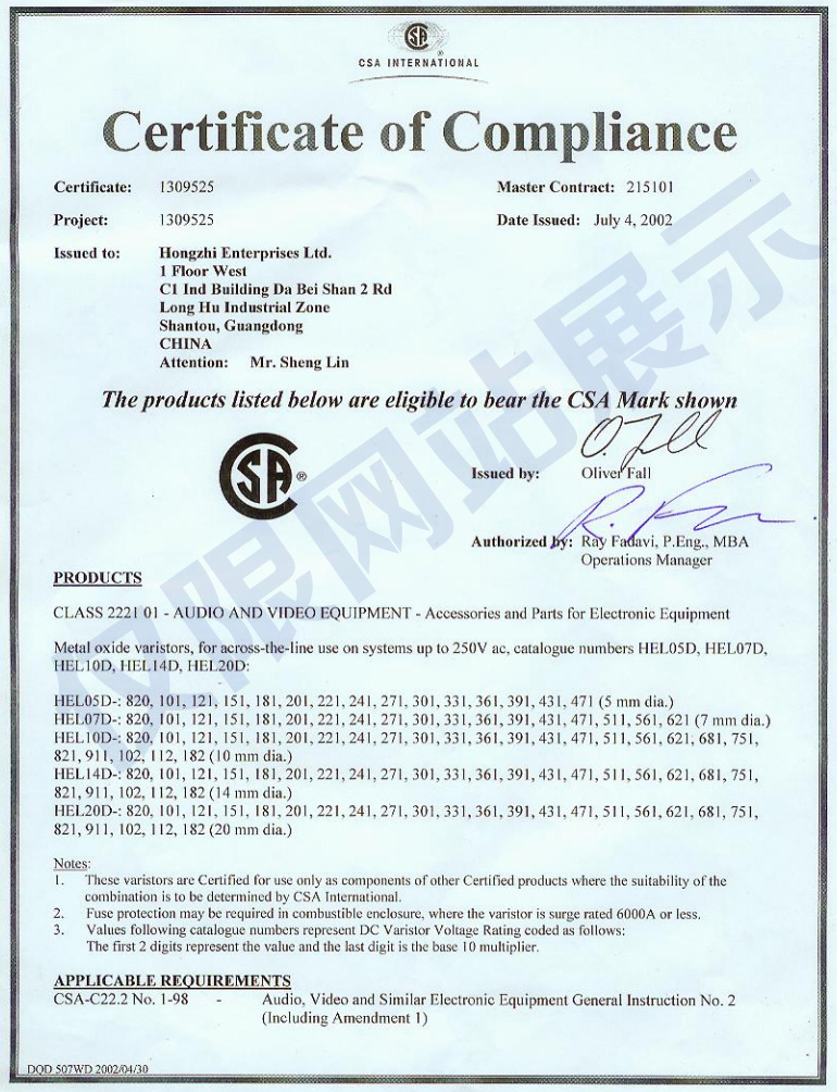 廣東鴻志電子科技有限公司成立于1993年,位于美麗的海濱城市汕頭,現(xiàn)已發(fā)展成為元器件制造集團企業(yè),生產壓敏電阻、NTC熱敏電阻、陶瓷電容和金屬化薄膜電容,通過了ISO9001質量體系認證和ISO14001環(huán)境體系認證,以及IATF16949汽車產品質量體系認證...